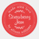 Autocollant rustique et moderne fait maison avec le texte fait avec amour, confiture de fraise et votre nom en blanc script moderne et typographie sur un arrière - plan rouge fraise. Ajoutez simplement votre nom et le nom du produit au étiquette. Conçu exclusivement pour vous par Happy Dolphin Studio. Si vous avez besoin d'aide ou de produits correspondants, veuillez nous contacter à happydolphinstudio@outlook.com .