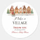 Invitation vos proches à une fête d'hiver confortable avec ce Il prend un Sticker rond classique de baby shower de village. Doté d'une charmante scène de maisons de pain d'épice et d'un poussette, ce design rustique reflète l'esprit de famille, d'amis et de convivialité pendant la saison d'hiver. Parfait pour les baby showers d'hiver, les thèmes sans distinction de genre ou les réunions d'inspiration vacances, ce modèle est conçu dans des tons chauds et neutres pour convenir à tout style. Personnalisez facilement votre texte avec des détails modifiables et créez une conservation unique pour votre journée spéciale.
