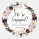 Nous sommes engagés est écrit au centre de la structure dorée autour décorée de roses violettes et mauves roses. Les noms du couple engagé et la date du fiançailles sont écrits ci-dessous. Beaucoup de feuilles verts et de vignes créent une belle aquarelle design. Utilisez sur les enveloppes de fiançailles ou les faveurs de la fête.Cet autocollant fiançailles fait partie de la collection Rose Mauve. Il contient les modèles do-it-yourself que vous pouvez utiliser pour créer des invitations de fiançailles élégantes et des fournitures de fête, Vous devriez voir un lien vers lui sur cette page. Si vous ne voyez pas de lien vers la collection ou si vous avez besoin d'aide avec un article, veuillez me contacter.