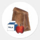 Sticker Rond Sac Brown Sack École Déjeuner Lady Apple Enseignan
