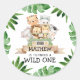 Safari Wild One Birthday Round Stickers sont parfaits pour la fermeture d'enveloppe ou préférez les autocollants. Correspondance d'éléments dans notre Boutique Cava Party Design
