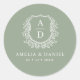 Sticker Rond Sage Green Crest Moderne Monogramme Mariage