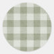 Sticker Rond Sage Green Gingham Buffalo Check Linen Texture