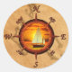 Rose de boussole nautique avec peinture numérique d'un voilier et coucher de soleil au centre et arrière - plan de carte de style vintage.