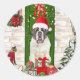 Saint Bernard Dog Noël assis à l'extérieur de la maison décorée avec la couronne de Noël, le sapin de Noël est une idée cadeau de Noël parfaite pour les amoureux de les chiens.