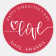 Sticker Rond Saint-Valentin Coeur Love-Lettering à la main Roug