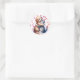 Sticker rond classique pour la Saint Valentin avec chiot et chaton