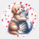 Sticker Rond Saint Valentin mignonne chiot et Kitty Hug