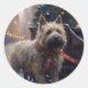 Sticker Rond Saison Festive de Noël à Cairn Terrier