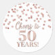 Sticker Rond Salutations à 50 Anniversaire Rose Gold Confetti