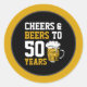 Sticker Rond Salutations et bières à 50 ans 50e anniversaire