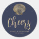 L'illustration vintage d'un coquillage de coquillages décorent cet autocollant de mariage classique de plage côtière, avec du texte de couleur or sur un arrière - plan bleu marine. Le mot "Cheers" apparaît dans un élégant script d'écriture. Ajoutez les noms du couple et la date du mariage ci-dessous.