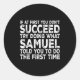 Sticker Rond Samuel - If At First You Don't Succeed Try Doing W