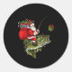Sticker Rond Santa Riding B Fish Christmas Fishing Funny Xmas P