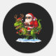 Sticker Rond Santa Riding Dinosaur T Rex Christmas Boys Men Xma