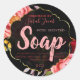 Ce étiquette produit pour savon artisanal présente un cadre semi-transparent paré d'or sur un bouquet de pivoines roses. Cet autocollant peut être utilisé pour ajouter cette touche finale aux cadeaux pour les amis et la famille, ou il peut être utilisé pour marquer vos produits faits à la main pour la vente.