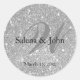 Joli autocollants de scellés d'enveloppe de faire-part de mariage fait dans de belles nuances d'argent. Le script personnalisé est prêt à personnaliser avec les noms de la mariée et du marié et la date du mariage. Jolie touche finale à n'importe quel faire-part de mariage.