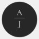 Sticker Rond Sceau d'enveloppe noir blanc Mariage Monogramme