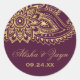 Sticker Rond Sceau Mariage d'enveloppe Gold Indian Paisley