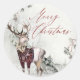 Sticker Rond Scène de Noël magique Bois rustique Cerf