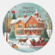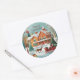 Sticker Rond Scène hivernale de Noël vert rouge joyeux