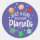 Sticker Rond Science Nerd fille spatiale qui aime les planètes