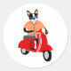 Découvrez Boston Terrier chevauchant son scooter vintage rouge! Cette illustration de Boston Terrier serait très intéressante pour les amateurs comme pour les chiens.