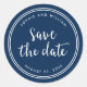 Sticker Rond Script bleu et bandes blanches Enregistrer la date