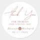 Mocha Merci moderne calligraphie de script autocollant rond mariage. Un design élégant avec l'expression "Merci" dans la calligraphie de script marron mocha et les noms du couple.