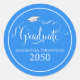 Ce design comprend un script de calligraphie de graduation en bleu pour un grand groupe de diplômés simple favoriser une typographie de script de calligraphie lunaire, un minimaliste à prendre un traitement modèle, un autocollant créatif étiquette party, pour un biscuit buffet de bonbons avec une jolie personnaliser personnalisée style chi blanc style créatif élégant étiquettes classe, avec un tableau de mortier casquette fantaisie tassel, une fête fournitures d'autocollants