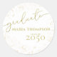 Ce design comprend un simple diplômé en calligraphie or, un script de typographie minimaliste moderne, pour une remise de diplômes grand étiquette, pour célébrer la fête de fête de fête, une classe de l'année élégant style, un jeu fantaisie design tendance, pour lycée ou collégial grad, une remise de diplômes grand, avec parties scintillant étincelante confetti or, un autocollant de graduation customisé sur mesure