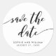 Stylish Save the Date sticker avec les mots "Save the Date" dans un script de relaxation cursive en noir contre un arrière - plan blanc. Personnalisez-le en remplaçant le texte de l'espace réservé. Pour plus d'options comme changer la police et sa taille/couleur ou l'espacement entre les lettres cliquez sur le bouton "Personnaliser". *Veuillez noter que le filigrane Zazzle qui apparaît dans l'aperçu du zoom n'apparaîtra PAS sur le produit imprimé final. © Bois de rose et agrumes