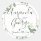 Script élégant | Eucalyptus Feuilles | Sticker rond classique Mariage
