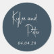Élégant autocollant de mariage avec un design simple et classique avec vos noms dans un script moderne et votre date de mariage dans une police serif traditionnelle.