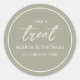 Un élégant modèle autocollant simple de mariage, avec tendance, typographie, script, un vert, autocollants de faveur, avec un simple, élégant, minimaliste prendre un texte agréable dans le vert sage