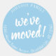 Sticker Rond Script moderne bleu Nous avons déplacé le nouveau