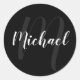 Sticker Rond Script moderne Monogramme personnalisé et nom noir