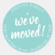 Sticker Rond Script moderne Turquoise Nous avons déplacé une no