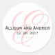 Sticker Rond Script rose vif E Monogramme initial Mariage Favor
