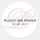 Simple, élégant, Blush Pink et White Script Monogram Wedding Favor Sticker ou Enregistrer le sceau de l'enveloppe Date. Par Elke Clarke©2009. Customisez avec votre nom de famille initial et les noms de mariée et de mariée et la date du mariage. Utilisez pour sceller vos enveloppes de faire-part de mariage ou ajouter à vos faveurs de mariage. Utilisez le menu d'édition "customiser" pour fixer l'espacement si vous changez la lettre.