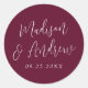 Des autocollants de mariage élégants avec vos noms dans un script blanc avec un arrière - plan bordeaux. Personnalisez les autocollants de mariage simples avec votre date de mariage. Design coordonne avec notre collection Simple Script mariage.