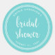 Élégant autocollant rond de Fête des mariées nautique avec une bordure à rayures blanches et le mot "douche nuptiale" dans le script de brosse tendance contre un arrière - plan turquoise. Utilisez-le pour sceller vos enveloppes. Consultez d'autres éléments mariages ici https://www.zazzle.com/rosewoodandcitrus/gifts?cg=196540141241316965&rf=238364477188679314 Personnalisez-le avec vos détails en remplaçant le texte de l'espace réservé. Pour plus d'options comme changer la police, la taille du texte/la couleur, l'espacement entre les lettres ou pour contracter ou développer le texte courbe cliquez sur le bouton "Personnaliser". *Veuillez noter que le filigrane Zazzle qui apparaît dans l'aperçu du zoom n'apparaîtra PAS sur le produit imprimé final © Rosewood et Citrus
