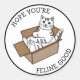J'espère que vous êtes félin bon, chat blanc assis dans une boîte, prenez bien un bon jeu de mots.