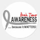 Voir tous nos modèles exclusifs de sensibilisation à la tumeur cérébrale TOUS AFFICHÉS SUR UNE PAGE en visitant la section sur la tumeur cérébrale de notre boutique Zazzle, faire une différence dans la lutte contre la tumeur cérébrale en livrant le message important de sensibilisation à tous autour de vous avec les t-shirts, vêtements, boutons et cadeaux qui ont un design simple, des polices texte contrastées, et un gris frappant Le ruban de sensibilisation à la tumeur cérébrale "souligne" le mot "SENSIBILISATION". En tant que survivants du cancer, conjoints et fervents défenseurs de la sensibilisation, nous sommes heureux de contribuer à de nombreux organismes de recherche médicale ainsi qu'aux efforts de sauvetage des animaux et de Sauvons le Darfour et vous demandez de penser à nous d'abord pour tous vos besoins de sensibilisation et de soutien pour le Tumeur Cerveau.