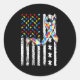 Sticker Rond Sensibilisation sur l'autisme américaine drapeau a