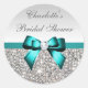 Sticker Rond Séquences d'argent Fête des mariées Turquoise Bow