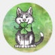 Un chat noir et blanc tenant un shamrock à trois feuilles dans sa bouche, pour la Saint Patrick, ou juste pour le plaisir !