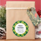 sticker mariage Merci avec un motif extensible mignon avec des trèfles vert olive sur un arrière - plan vert foncé. Un cercle superposé avec une fausse bordure en feuille d'or avec votre texte personnalisé à l'intérieur.