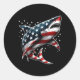 Sticker Rond Shark American Flag Usa 4 juillet Funny Boys Gir