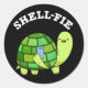 Sticker Rond Shell-fie Funny Tortoise Selfie Pun Dark BG